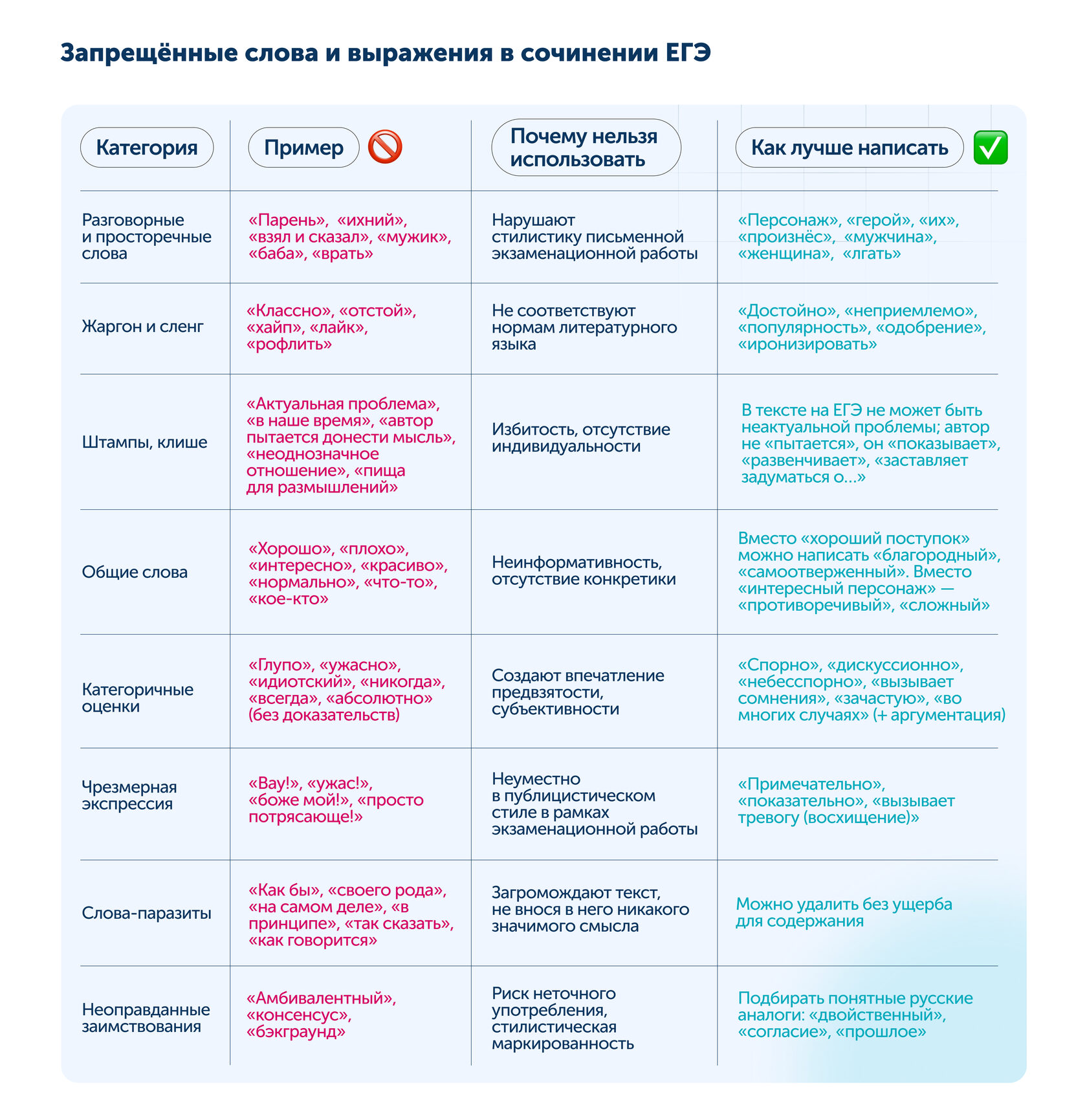 Запретные слова нельзя использовать в сочинении на ЕГЭ по разным причинам:
